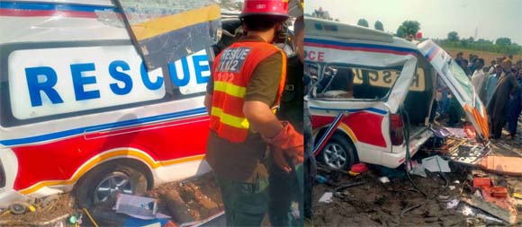 مسافر بس اور ریسکیو ایمبولینس میں تصادم،ریسکیو اہلکاروں سمیت 6 افراد جاں بحق، 3 زخمی