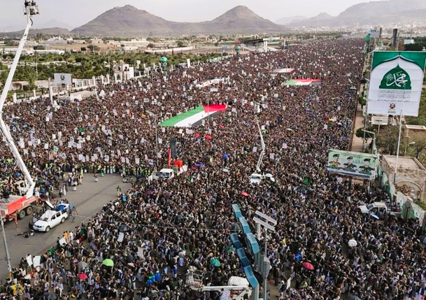 انہوں نے متنبہ کیا کہ اسلامی مقدسات پر مسلسل حملے مسلم قوم کے خلاف کھلی جنگ کے زمرے میں آتے ہیں۔عوام نے اس بات کا اعادہ کیا کہ یمن پر صیہونی جارحیت، جس میں خدمات کی تنصیبات اور شہریوں کو نشانہ بنایا جا رہا ہے، یمنی عوام کے عزم اور فلسطینی کاز کی حمایت میں ان کے اصولی موقف کو اس وقت تک مضبوط کرے گی جب تک جارحیت بند نہیں ہو جاتی اور غزہ کی ناکہ بندی ختم نہیں ہو جاتی۔مظاہرین نے یمنی اور فلسطینی جھنڈے اور بینرز اٹھا رکھے تھے جن پر حضرت محمد صلی اللہ علیہ و آلہ وسلم کی ولادت باسعادت کی مناسبت سے جشن منایا جا رہا تھا اور ان کی محبت، وفاداری اور ان کے راستے پر چلنے کے عزم کا اظہار کیا گیا تھا۔