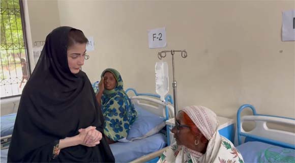 لاہور: وزیراعلیٰ پنجاب مریم نواز نے سرحدی علاقے تلوار پوسٹ اور شیخ پورہ نو کے ریلیف کیمپ کا دورہ کیا جہاں انہوں نے متاثرہ خاندانوں سے ملاقات کی اور سیلاب میں گھرے نومولود کو بحفاظت نکالنے پر ڈی ایس پی نعمان کو انعام دیا جبکہ ریسکیو ٹیم کے لیے 10 لاکھ روپے انعام کا اعلان بھی کیا۔ وزیراعلیٰ نے لائیو اسٹاک، ہیلتھ، ریسکیو اور پولیس کیمپوں کا معائنہ کیا اور سیلاب سے بچاؤ کے لیے آبی ذخائر بنانے کا حکم دیا۔ مریم نواز نے قصور کے فلڈ ریلیف کیمپ اور عارضی اسپتال کا بھی دورہ کیا، مریضوں کی عیادت کی اور متاثرین کے مسائل سنے۔