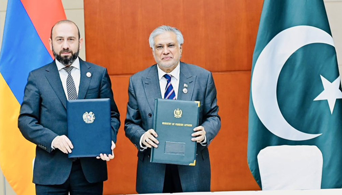 بیجنگ: نائب وزیر اعظم اور وزیر خارجہ اسحاق ڈار نے پاکستان اور آرمینیا کے درمیان سفارتی تعلقات کے قیام کا اعلان کیا۔ انہوں نے کہا کہ انہوں نے اور آرمینیا کے وزیر خارجہ آرات میر زویان نے چین کے شہر تیانجن میں سنگھائی تعاون تنظیم کے اجلاس کے موقع پر دونوں ممالک کے درمیان سفارتی تعلقات کے قیام کے مشترکہ اعلامیے پر دستخط کیے اور اس کا تبادلہ کیا۔