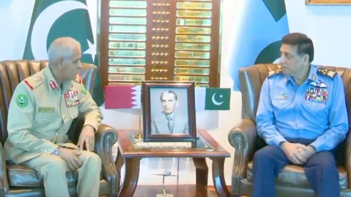 راولپنڈی: بحرین کی ڈیفنس فورس کے چیف آف سٹاف، لیفٹیننٹ جنرل تھیاب صقر عبداللہ النعیمی نے ایئر ہیڈ کوارٹرز اسلام آباد کا دورہ کیا اور اس موقع پر سربراہ پاک فضائیہ، ایئر چیف مارشل ظہیر احمد بابر سدھو سے ملاقات کی۔ آئی ایس پی آر کے مطابق معزز مہمان کا استقبال پاک فضائیہ کے گارڈ آف آنر سے کیا گیا۔